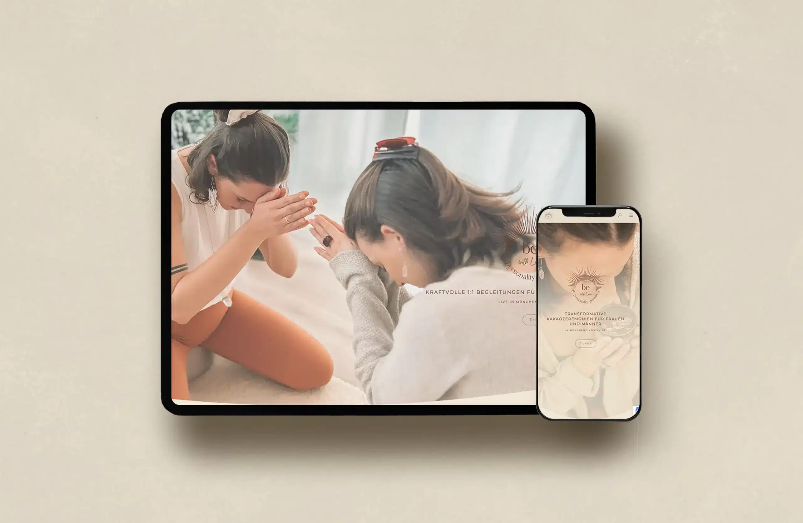 Die Farben der Website lehnen sich stark an den Kakao selbst an – tiefes, warmes Braun, Goldtöne, Beige und sanfte Hauttonnuancen schaffen eine Atmosphäre, die sowohl beruhigend als auch erdig ist. Diese warmen Farbtöne erwecken die Sinne und erinnern an die Kraft und die heilende Wirkung des Kakaos. Gleichzeitig sorgen sie für eine harmonische und einladende Präsenz auf der Website, die den Besucher sofort in die spirituelle Welt von BeWithLena eintauchen lässt.